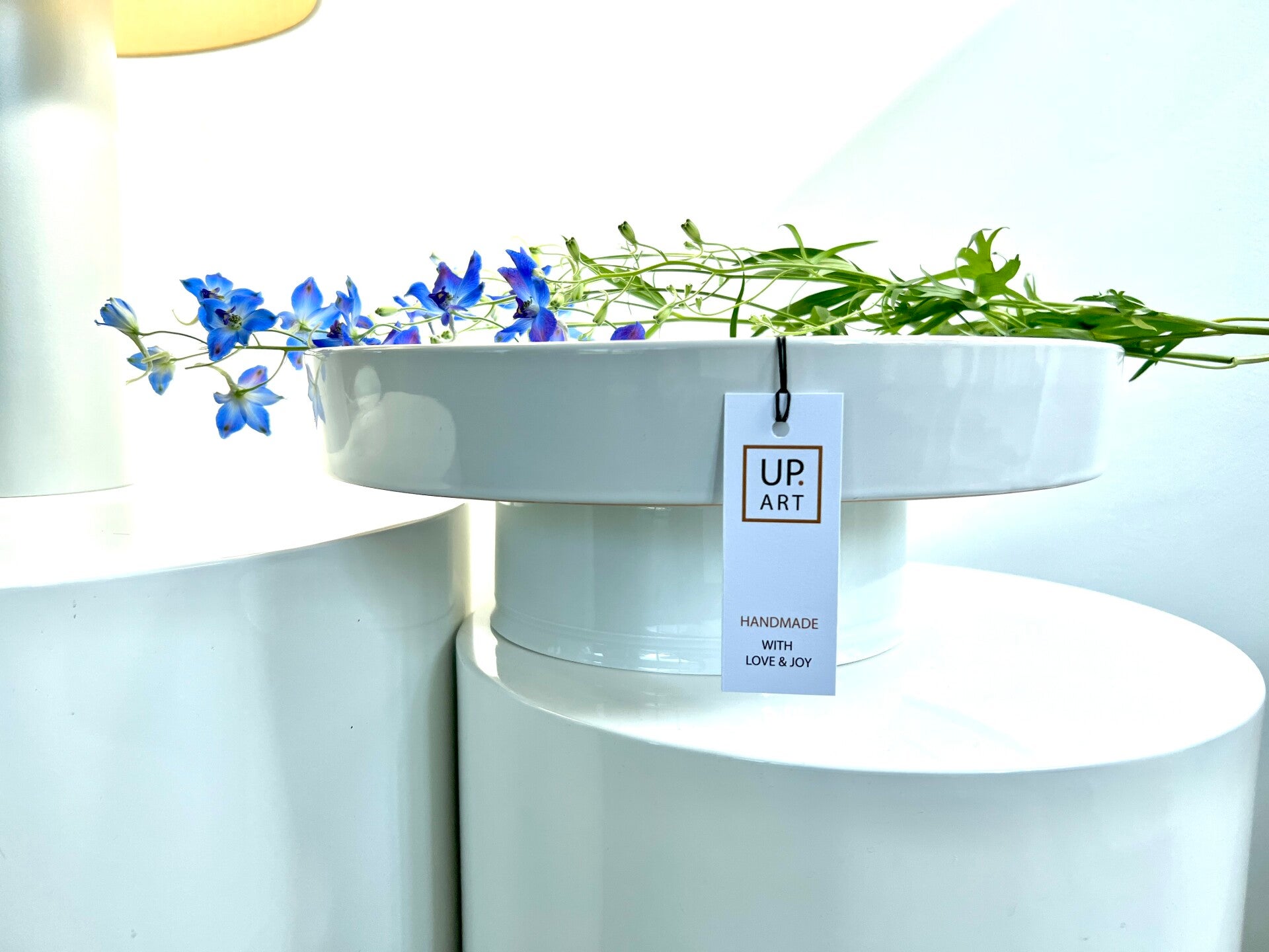 Schaal wit op witte voet / doorsnede 39 cm x h.14 cm