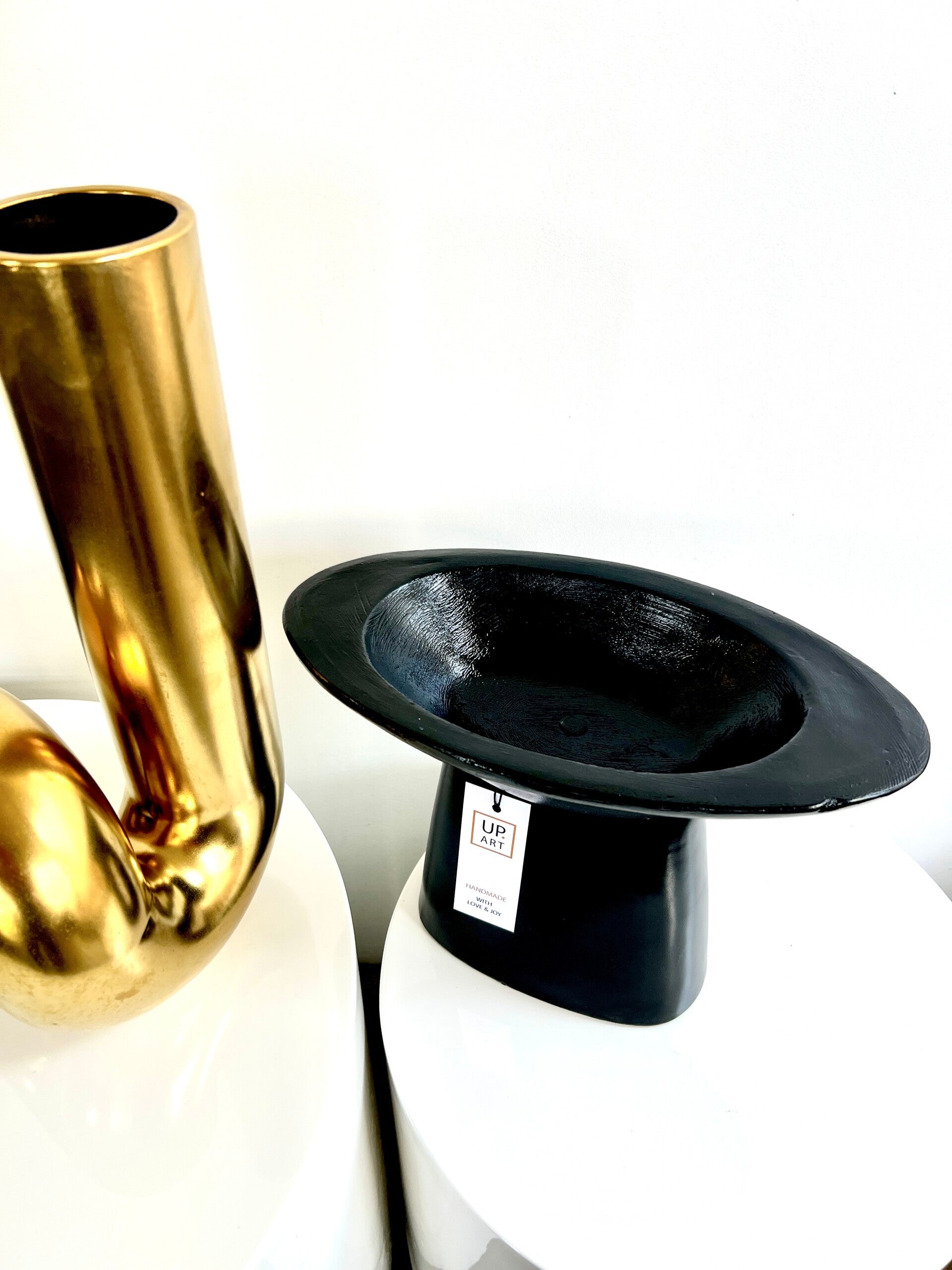 Schaal zwart op hoge voet / h 32 cm x b 22 cm