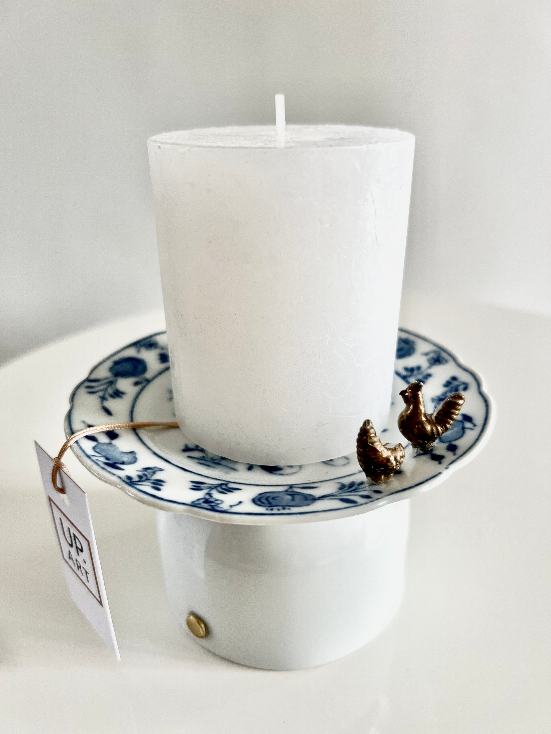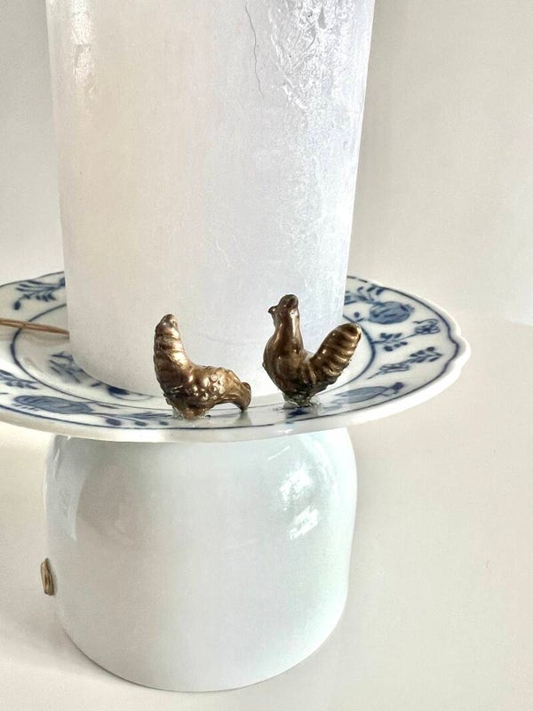 Wit/ delfsblauw bordje/ gouden kippetjes