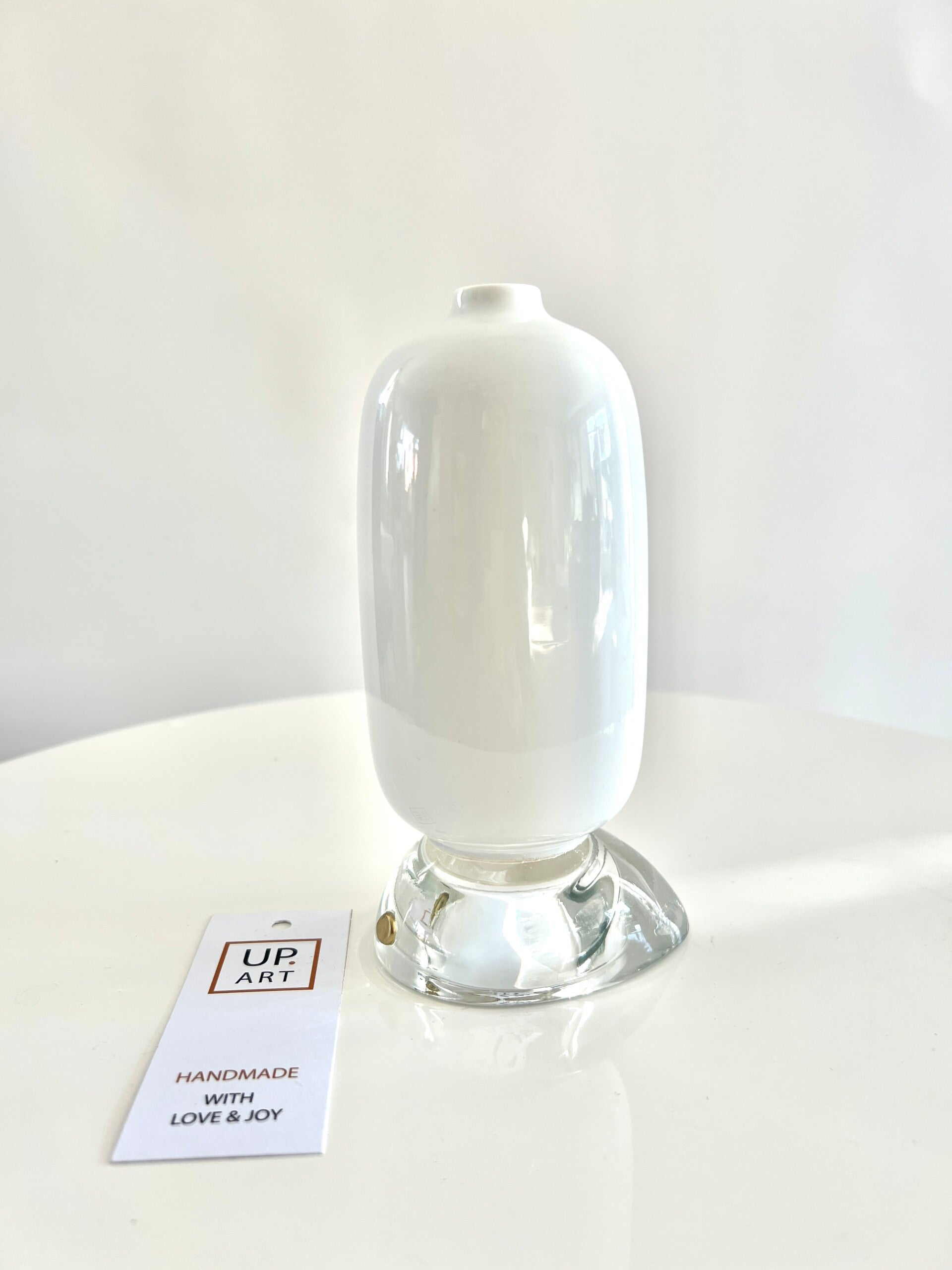 Vaasje wit/ glazen voetje