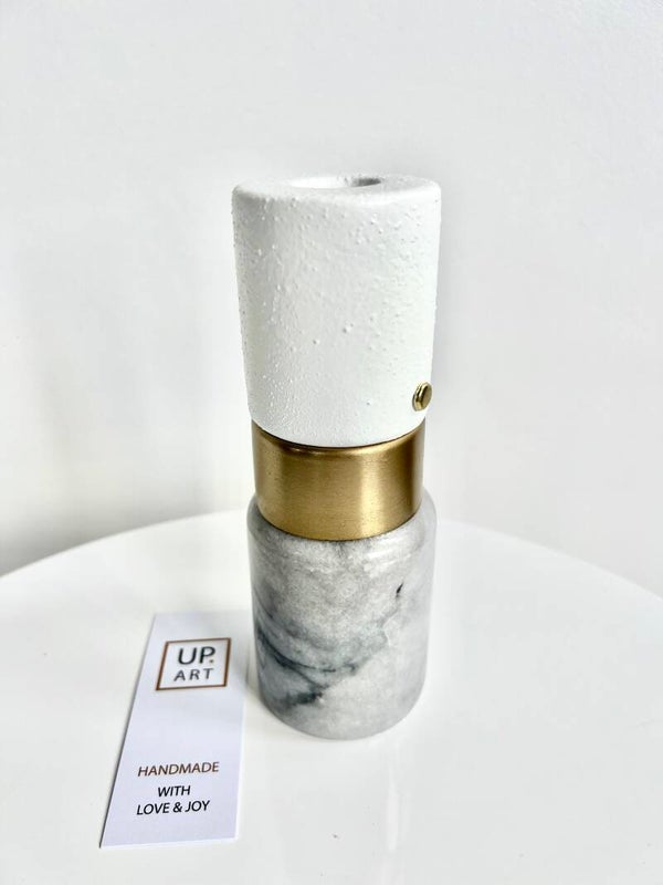 Kandelaar marmer, goud, wit